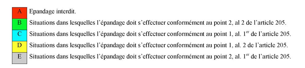 Seul le fumier provenant des aires de couleur jaune peut être stocké directement au champ